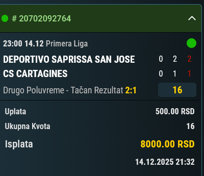 probao i sa TR 2:1 prvo , ušlo drugo poluvreme