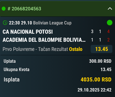 27.Oktobar , rezervna varijanta tiketa 15.77 , kvota 9.44