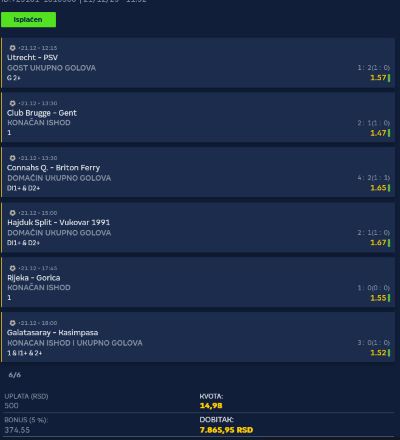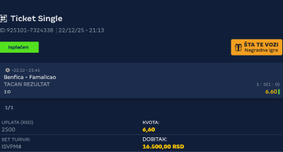 čekao 1&2+ za 20.000 din. branio sa 1:0