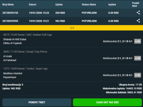 iz zezanja uplatio i doslo i ovo.. 1701 12/2/2018 12:30:00 AM Guabira Royal Pari 1-2 31.00 1:0 1:2