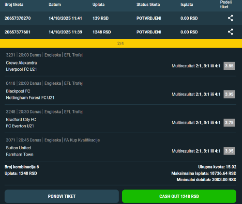 Nadam se da je neko upratio.Kvota 6.75