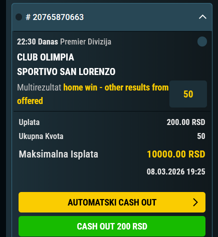 Jbga juce pogodim tiket na kvotu 6,7 ali ga ne objavih ovde. Danas idem sa slicnim kvotom I standardno 3 tekme. 1.TROMSDALEN- OSLO #2#@2,05. Mec 9.kola druge Norveske lige izmedju 16-oplasiranog I 5-oplasiranog. Razlika u kvalitetu je i vise nego očigledna. Dovoljno je da pogledate formu ove dve ekipe I meceve koje su odigrali i sve ce vam biti jasno, a kvota je vise nego idealna, i u konstatnom je padu, zato pozurite. 2. MALME-ESKIKSTUNA#1&D2+#@1,55 Kao i za predhodni mec, nema potrebe da se nesto puno pise. 3.FREJ-VARBERGS #2#@1,75 GOSTI su pravo iznenadjenje ove sezone. Igraju sjajno kako u gostima tako i na domacem terenu. Domacin nista specijalno. Mogu da iznenade i neki njihov maksimum na ovom mecu je x, ali cisto sumnjam jer Varbergs prosto gazi sve pred sobom. Pozurite. Mecevi pocinju oko 15-16h. Kao bonus, da se malo pojaca kvota predlozio bih Celtic 2(@1,35) I Lugano 1 (@1,25)