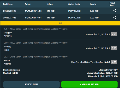 Ima li neko tiket neki siguran za sutra, do 10 kvotee, da lupim 1000, 2000 da uzmem kintu neku, danas pao na kosarku glupu...