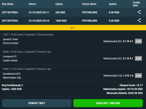 U pitanju je meč između Tima i Kirgiosa --> hendikep2.5 u Max Betu da će Tim pobediti 3:0 2.45@, u Sokeru US4-5 1.8@. Mogućnost pada samo ako Kirgios pobedi 3:0 što ja iskreno ne vidim kao konačan ishod. Uglavnom ako rasporedite novac na ove dve kvote kako treba možete uzeti novac (za to imate sajtove koji to odrade vi samo unesete podatke), ali kažem mogućnost za pad jeste samo 3:0 za Kirgiosa pa vi sami procenite da li je vredno rizika. Srećno!