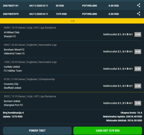 Pozdrav burazeri, danas nesto slabija ponuda fudbala, pa sam se osvrnuo na kosarku.U 19:30 Bursa docekuje Fener u okviru 2. meca cetvrtfinala plej-ofu.Prvi mec Fener je dobio po meni previsokim rezultatom.Bursa je konstantno bila tu, ali neka slobodna bacanja su odvela Fener na dvocifrenu razliku, pa se mec zavrsio pobedom Fenera od 13 razlike.Ono sto je meni zapalo za oko je granica na poene domace ekipe(79.5).Mislim da je ovo granica koju ce Bursa lagano preci.Oni ovu granicu na domacem terenu nisu presli poslednji put 21.12.2021. protiv Ulma, dakle pre POLA GODINE. a ujedno u tom periodu su pretrpeli samo jedan poraz na svom terenu(od Buducnosti).Fenerbahce ce biti oslabljen ne igranjem Dyshawn Pierrea.Iz svega ovoga kao najsigurniji tip bih izvukao Domacin 79.5+(1.85), a mislim da uz vruc teren i punu halu Bursa moze i do pobede 1@2.40.Za one koji vole vece kvote 1i+poena @5.70.SRECNO ID:145494271